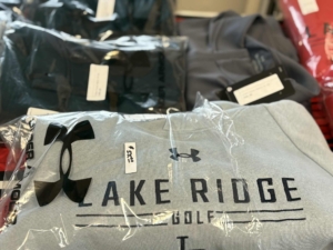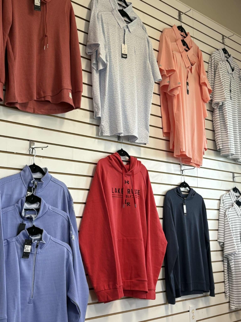 The Lake Ridge Golf and Sports Bar Pro Shop carries a small collection of name brand apparel and merchandise such as golf balls, gloves, hats, towels and other golf items for you to play your round.